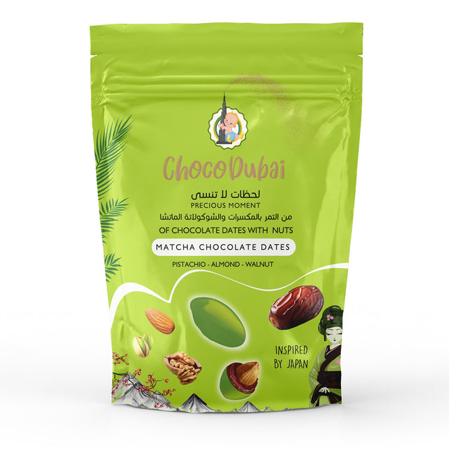 تمر ماتشا بالشوكولاتة محشو بالمكسرات 100 جرام