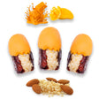 • متعة شوكولاتة المانجو : مغموسة جزئيًا في شوكولاتة المانجو الناعمة والكريمة التي تذوب في فمك، مما يضيف تباينًا غنيًا ومخمليًا لحلاوة التمر الطبيعية.