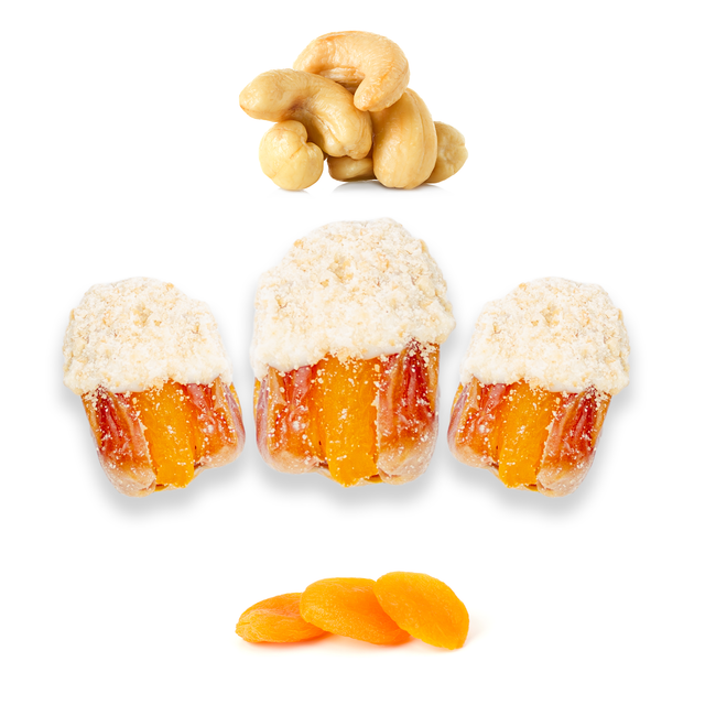 تمر ساجي فاخر محشو بالمكسرات ومغطى جزئيًا بشوكولاتة الكاجو - تمر صاجي - شوكولاتة - مسحوق كاجو - قشر برتقال تم طلبه مسبقًا وسيتم شحنه بمجرد عودته إلى المخزون.