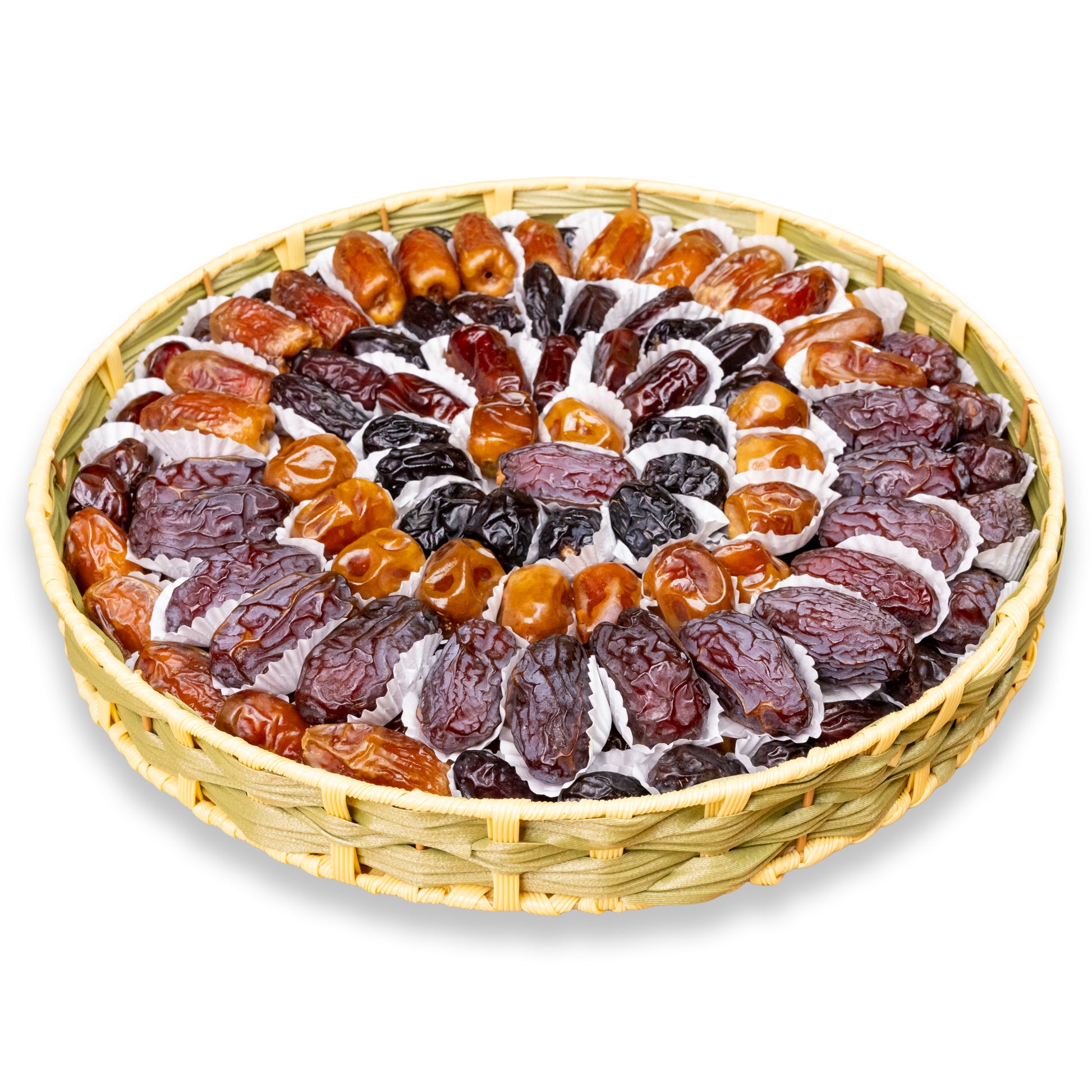 قم بترقية تجربتك مع صينية التمور الفاخرة من Kingdom Dates - مجموعة مختارة بعناية من أجود أنواع التمور العادية من جميع أنحاء المنطقة، بما في ذلك التمور الممتازة من نوع المجدول (الأردني) ، والتمور من نوع عجوة المدينة (المملكة العربية السعودية) ، والتمور من نوع الخضري ، والتمور من نوع الصاجي ، والتمور السكري ، والتمور من نوع الصفاوي .