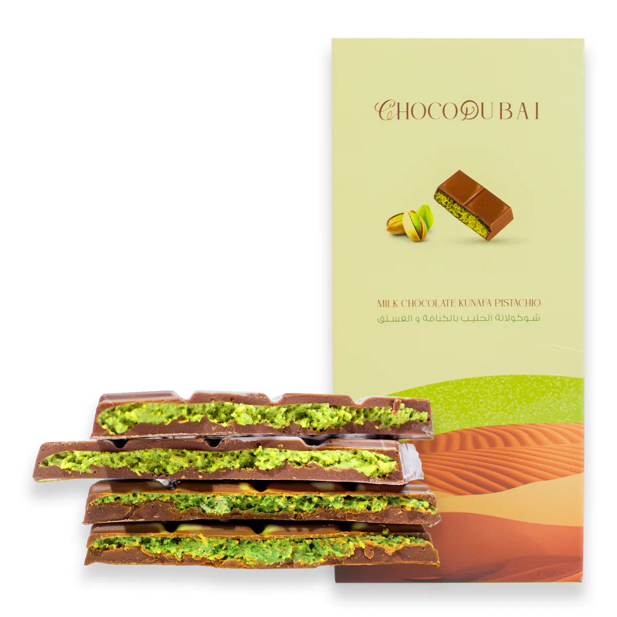AED 2499Unit price /UnavailableMilk Chocolate Kunafa Pistachio 100 GM (Zero Refined Sugar)