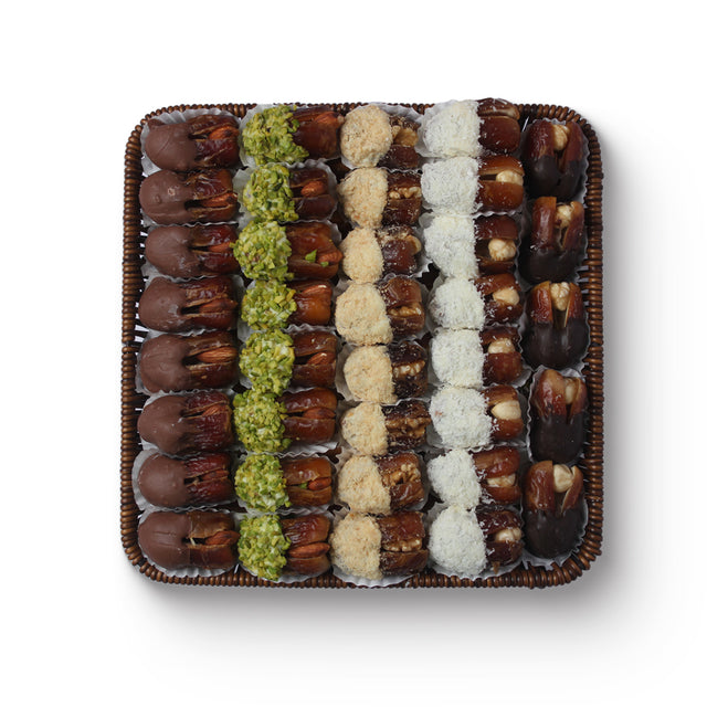 Half-Coated Dates Tray – Assorted Gourmet Chocolate & Nut Delights