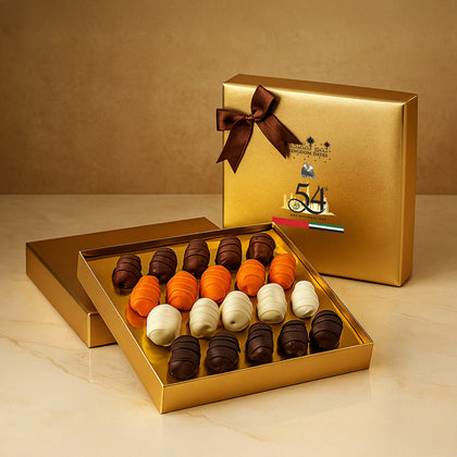 Golden Stuffed Dates Gift with Lines & Nuts – 16 Premium Pieces