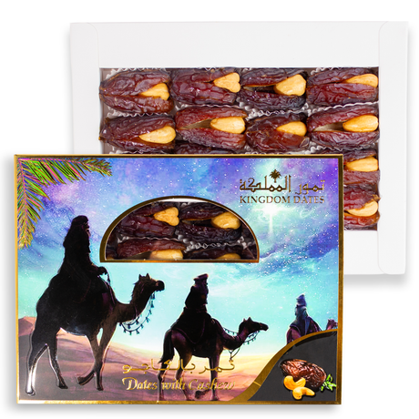От AED 6499Цена за единицу товара /НедоступноРоскошные финики Саги, фаршированные орехами и наполовину обваленные в шоколаде с кешью
