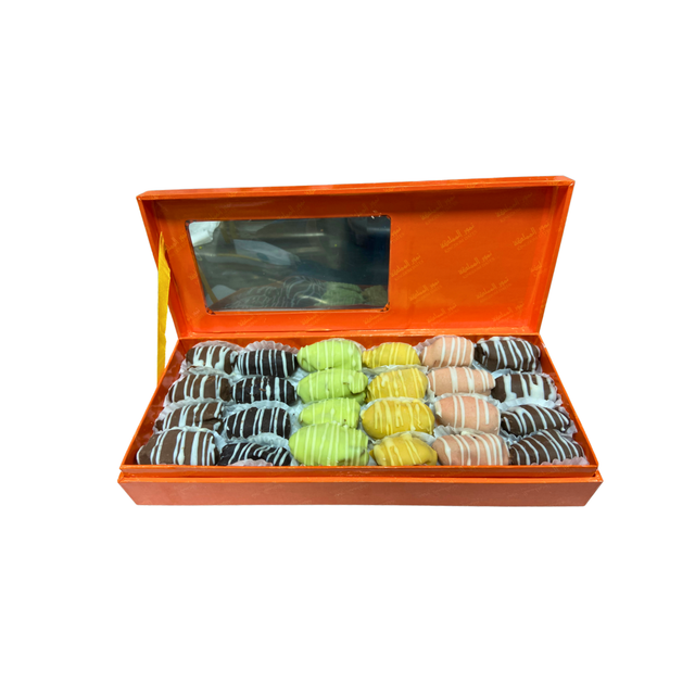 Оранжевая подарочная коробка с финиками в шоколадной глазури, 400 г