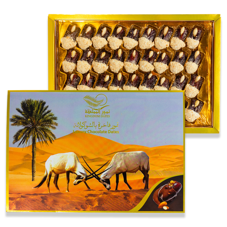 AED 2295AED 2495Цена за единицу товара /НедоступноФиники из верблюжьего молочного шоколада с ореховой начинкой 100 г