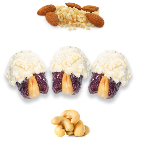 AED 2499AED 3000Цена за единицу товара /НедоступноКокосовые шоколадные финики, фаршированные орехами 100 г