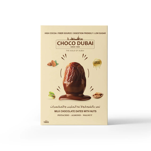 Choco Dubai Milk Chocolate Dates with Nuts – Viral Dubai Edition (100g)